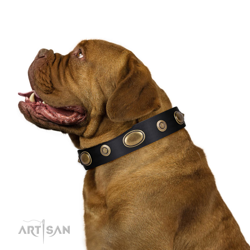Dogue de Bordeaux adorned full grain genuine leather collar for walking