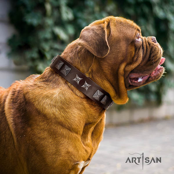FDT Artisan Brown Leather Dog Collar with Attractive Studs