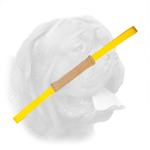 Of course, to achieve desirable results, regular training sessions are not enough, so you should care a lot about the equipment you use in educating your puppy. Our Leather Dogue de Bordeaux Bite Tug will help you to develop canine's strong bite grip and to assure his safety during training sessions. It will help to teach your four-legged child to follow your commands, prepare him for the future advanced training sessions and for protection and guard work.